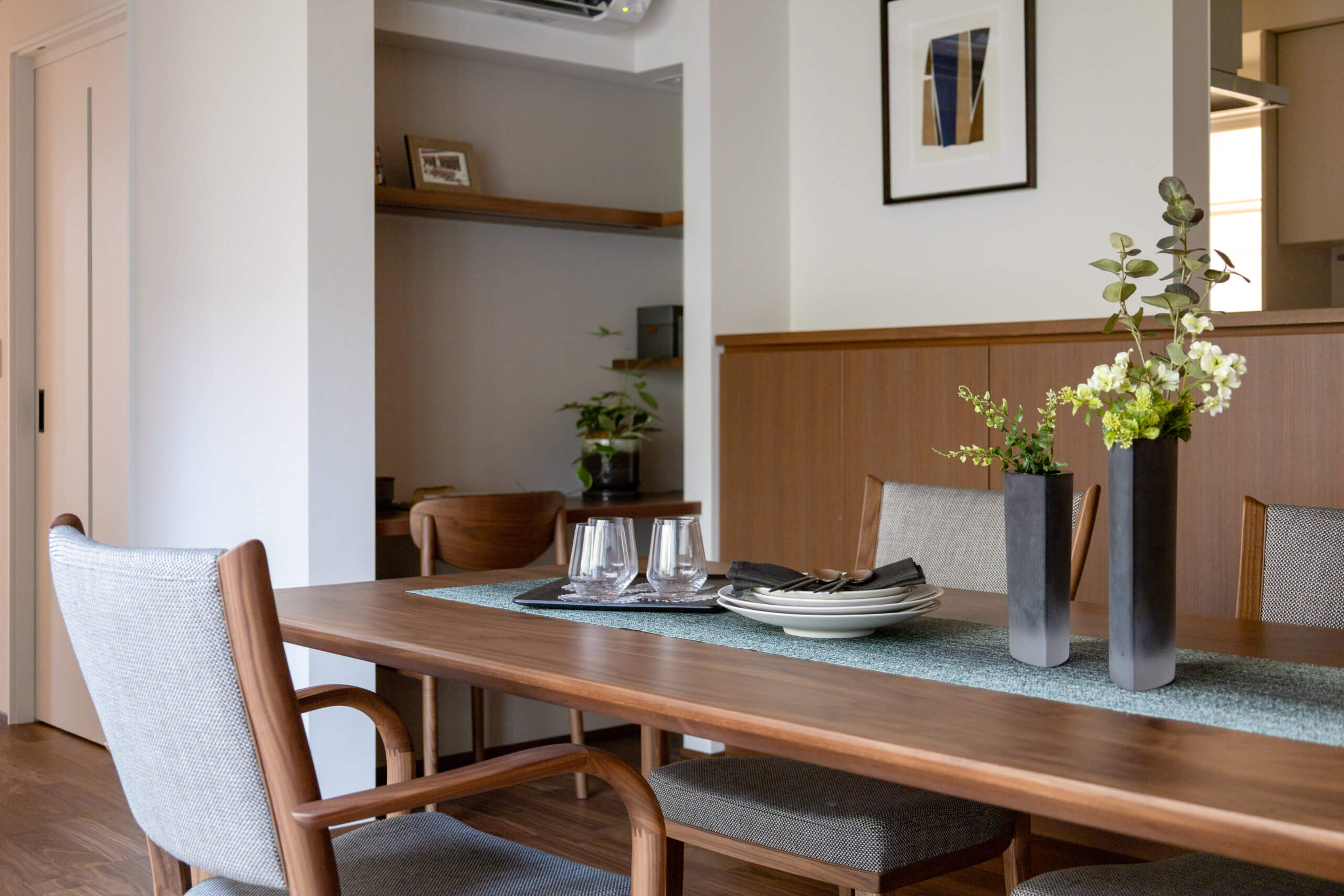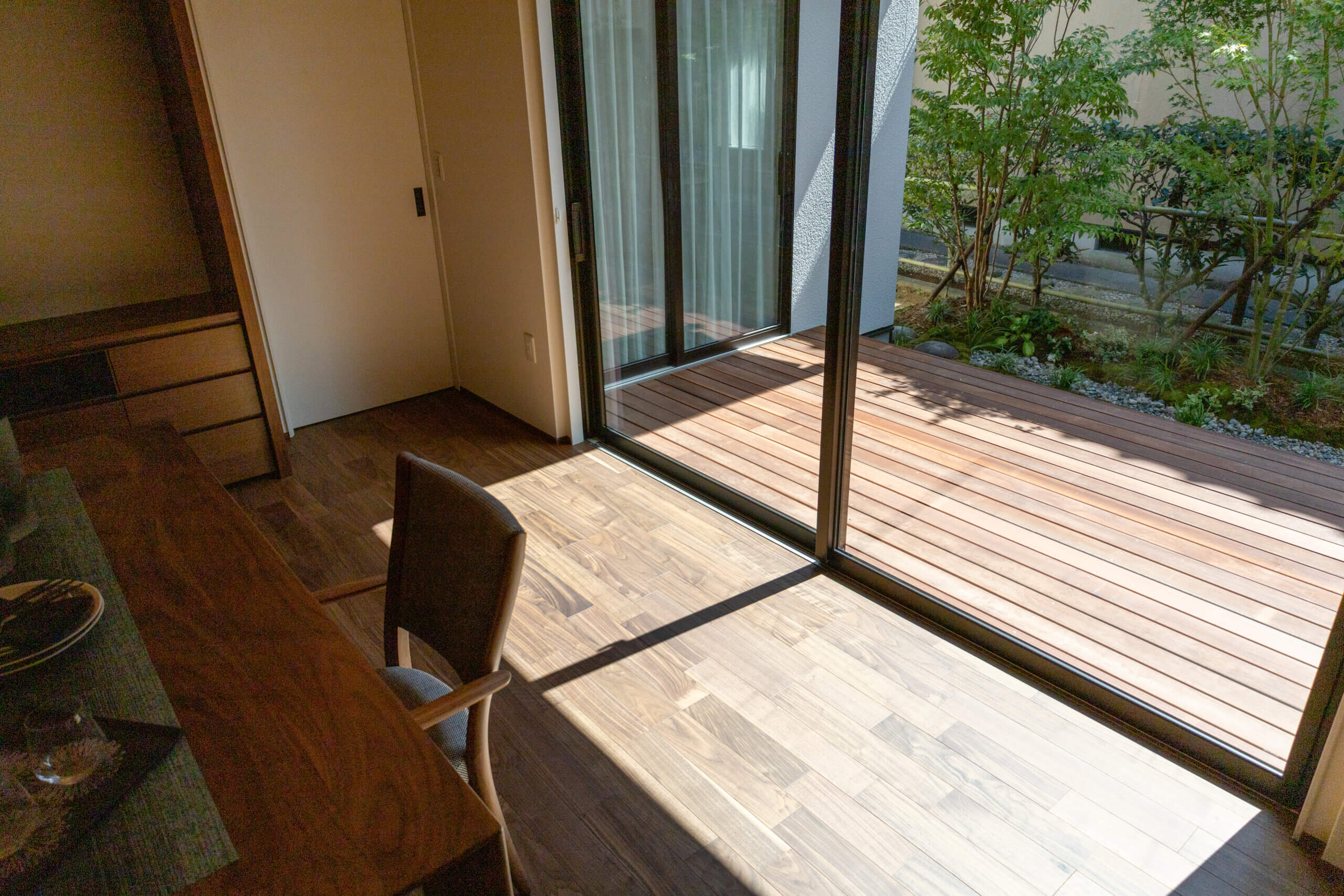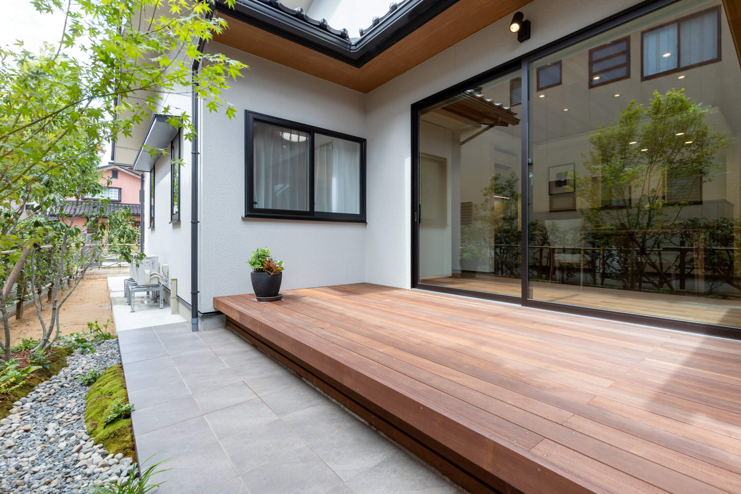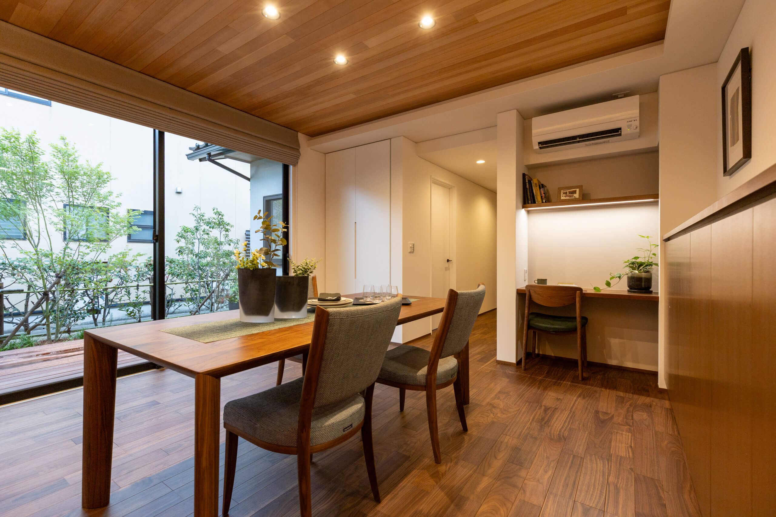 住みやすく、使いやすく、 車庫からの動線、幅広な通路や収納。 設計の工夫から家族の暮らしかたの知恵が伝わる。 皆が集えるリビング・ダイニングを中心に それぞれの部屋へ段差なくアクセスできる平屋プラン。 家族の絆を深め、優しさに溢れた心地よさは、 時とともに美しく育ち、深い味わいが紡がれる。
