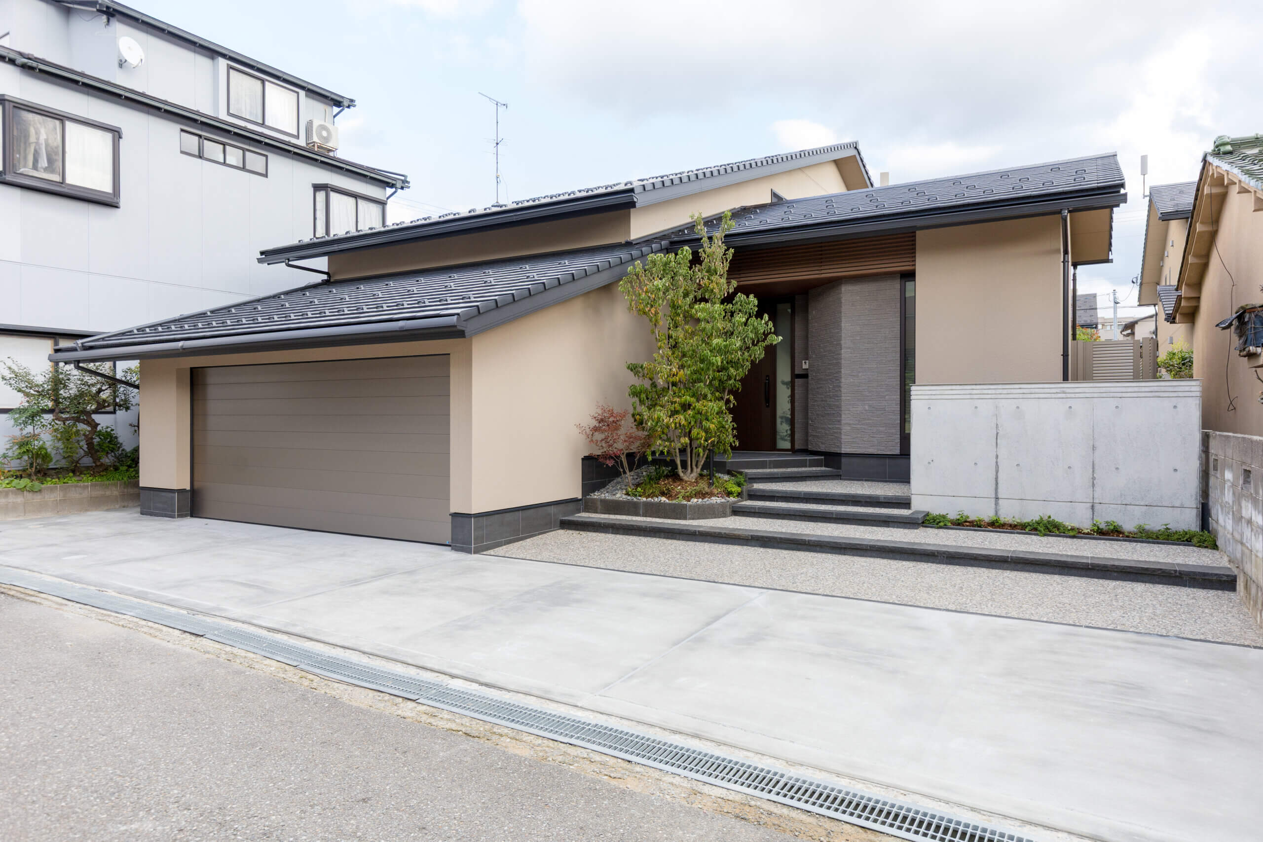 美しい外観の大屋根の姿が住まいの品格を感じさせる。