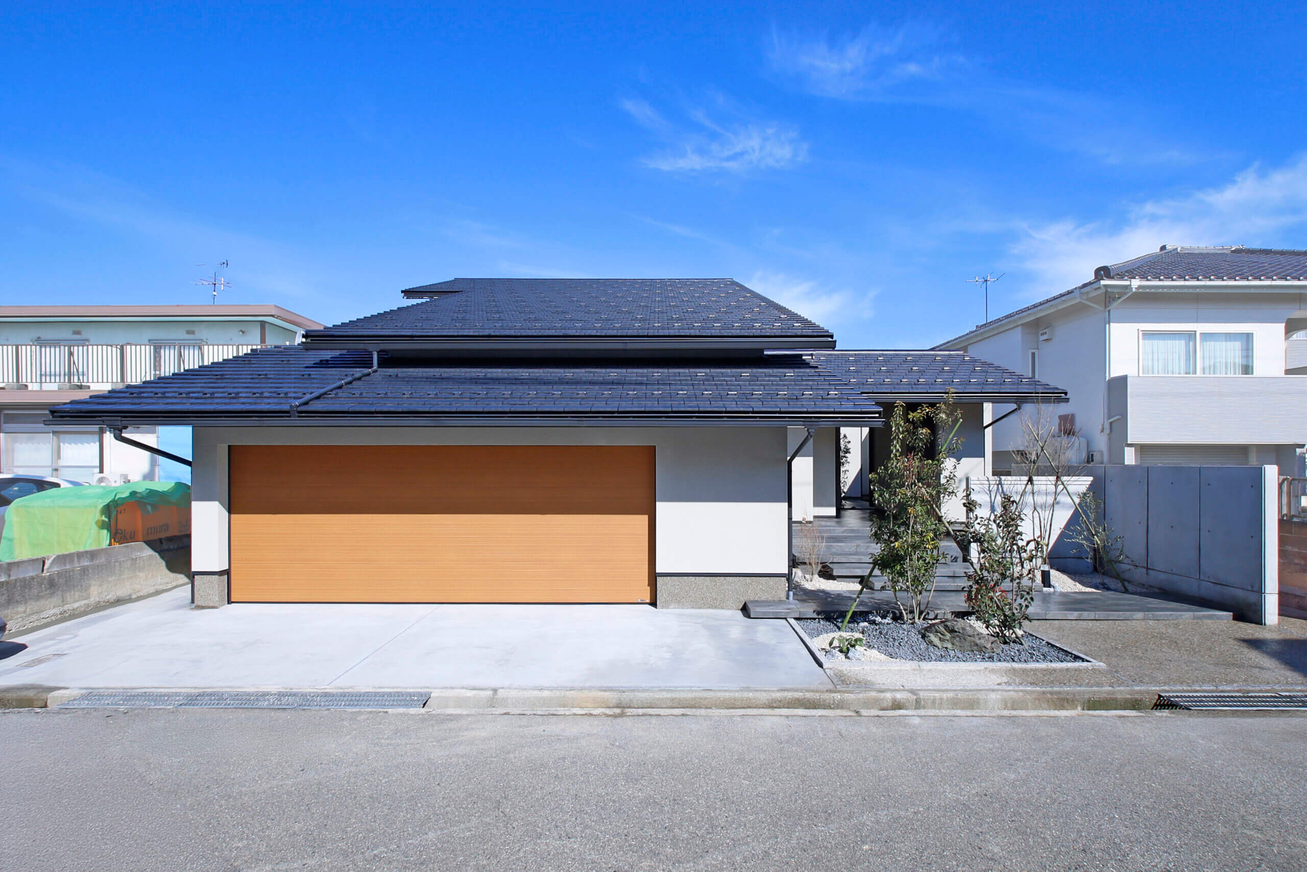 柔らかな陽光と木に包まれた大屋根スタイル 大屋根スタイル こだわりLDK こだわり玄関・ホール ビルトイン車庫 子育て世帯 庭・テラス 勾配天井・吹き抜け 家事動線・生活収納 和室 50~60坪台 詳細はこちら