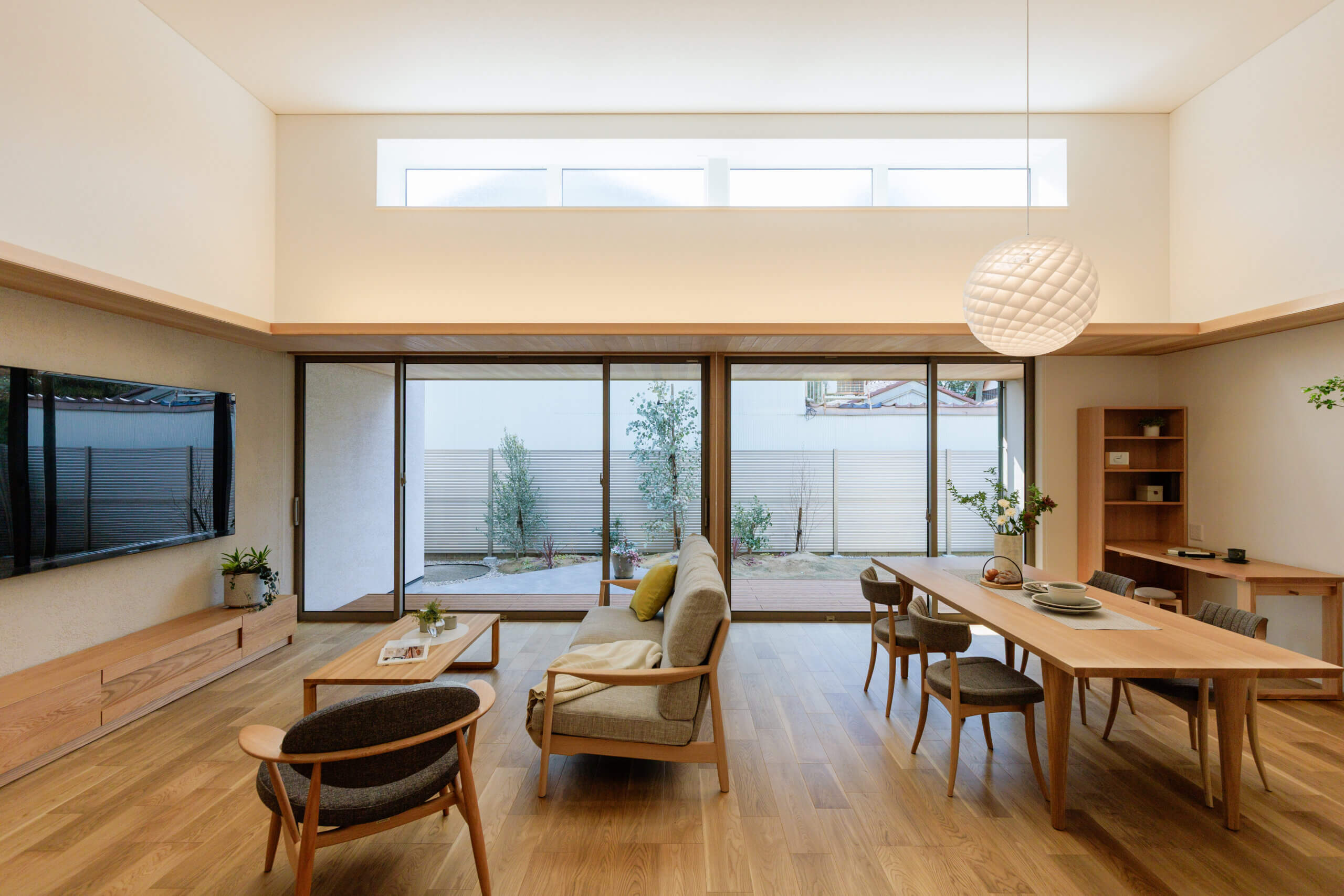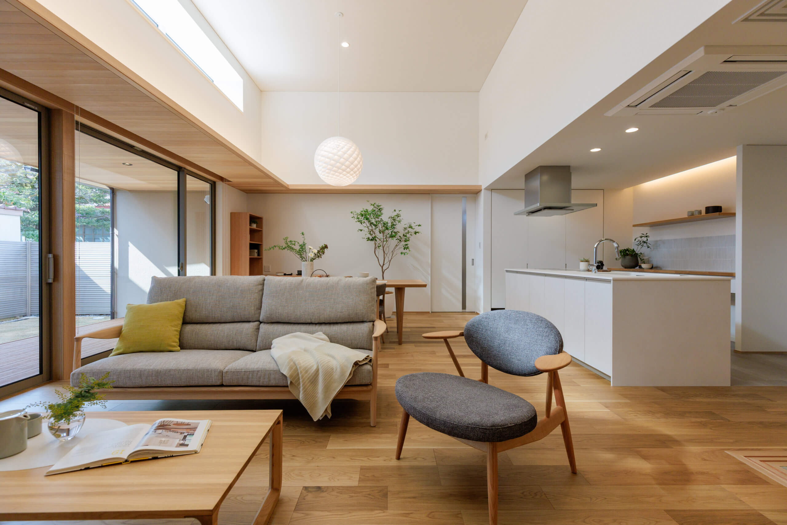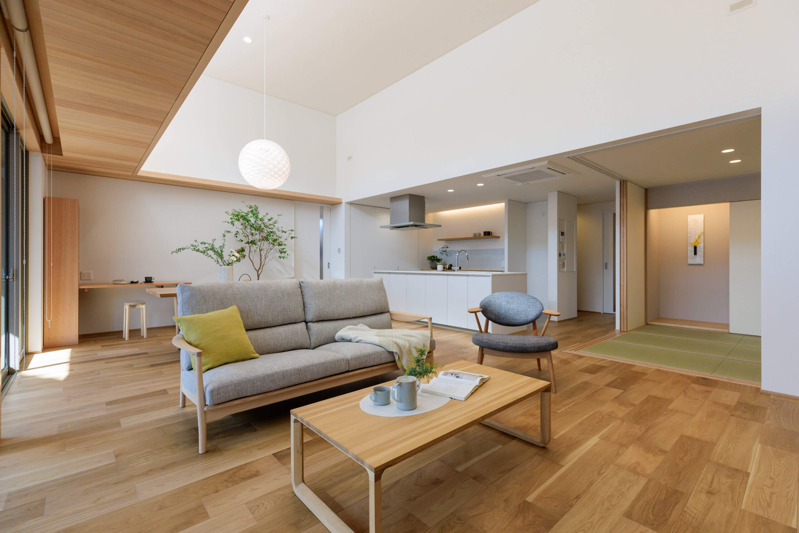 庭とLDKの広がりが融合した一体感 グランドスタイル~玉家の平屋~ こだわりLDK こだわり玄関・ホール 子育て世帯 庭・テラス 勾配天井・吹き抜け 家事動線・生活収納 和室 50~60坪台 詳細はこちら