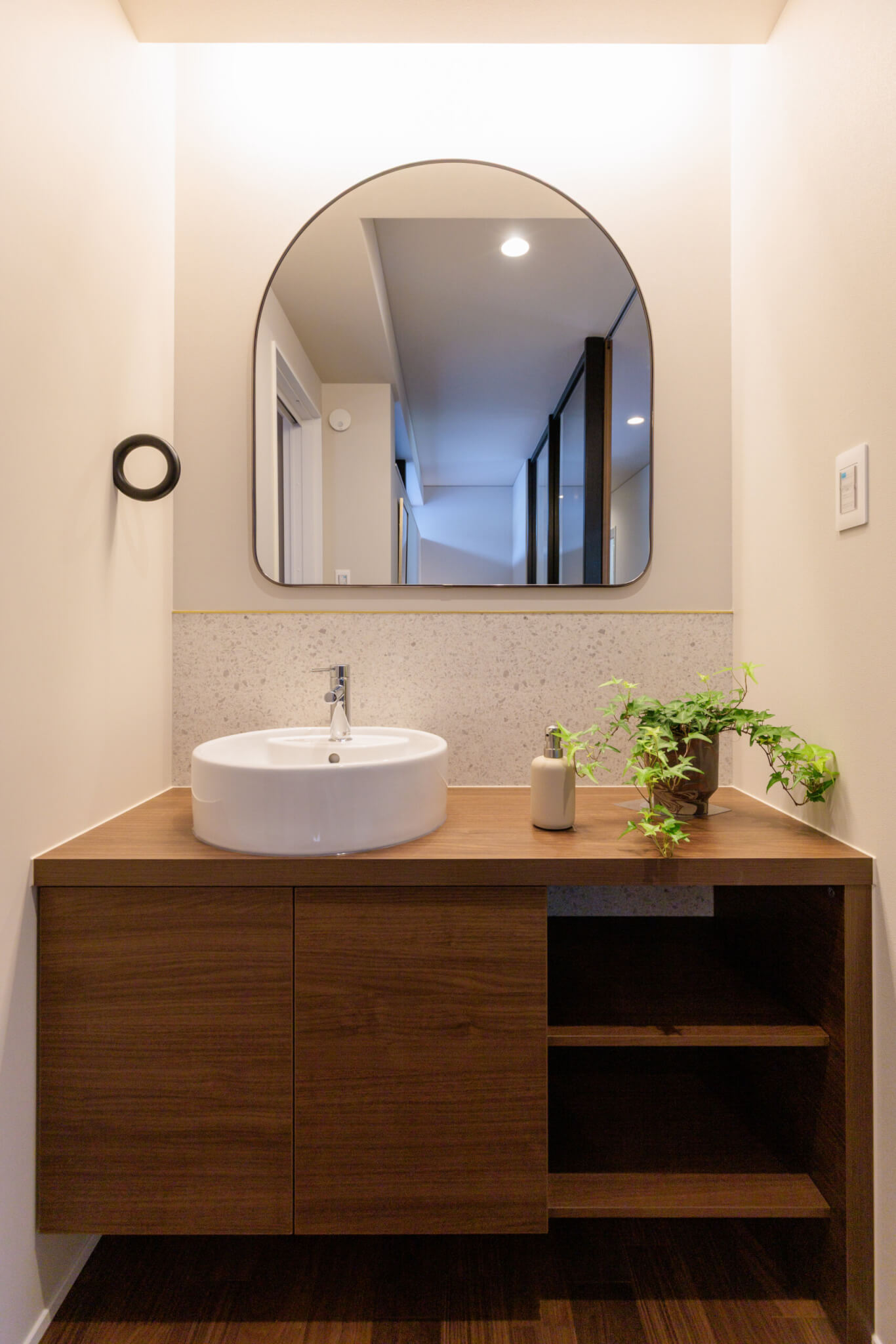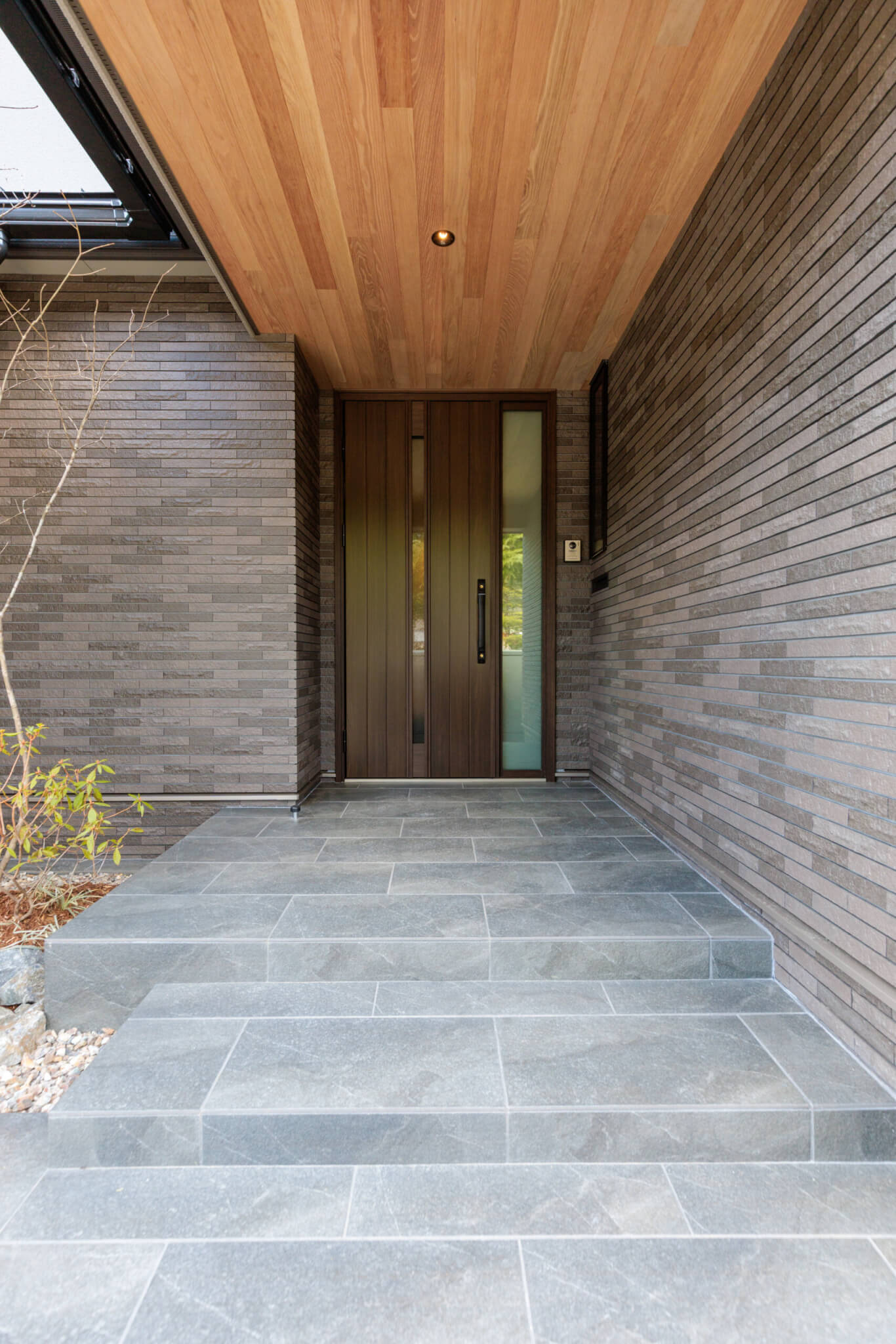軒の出の奥行感と象徴的な明かりを灯す