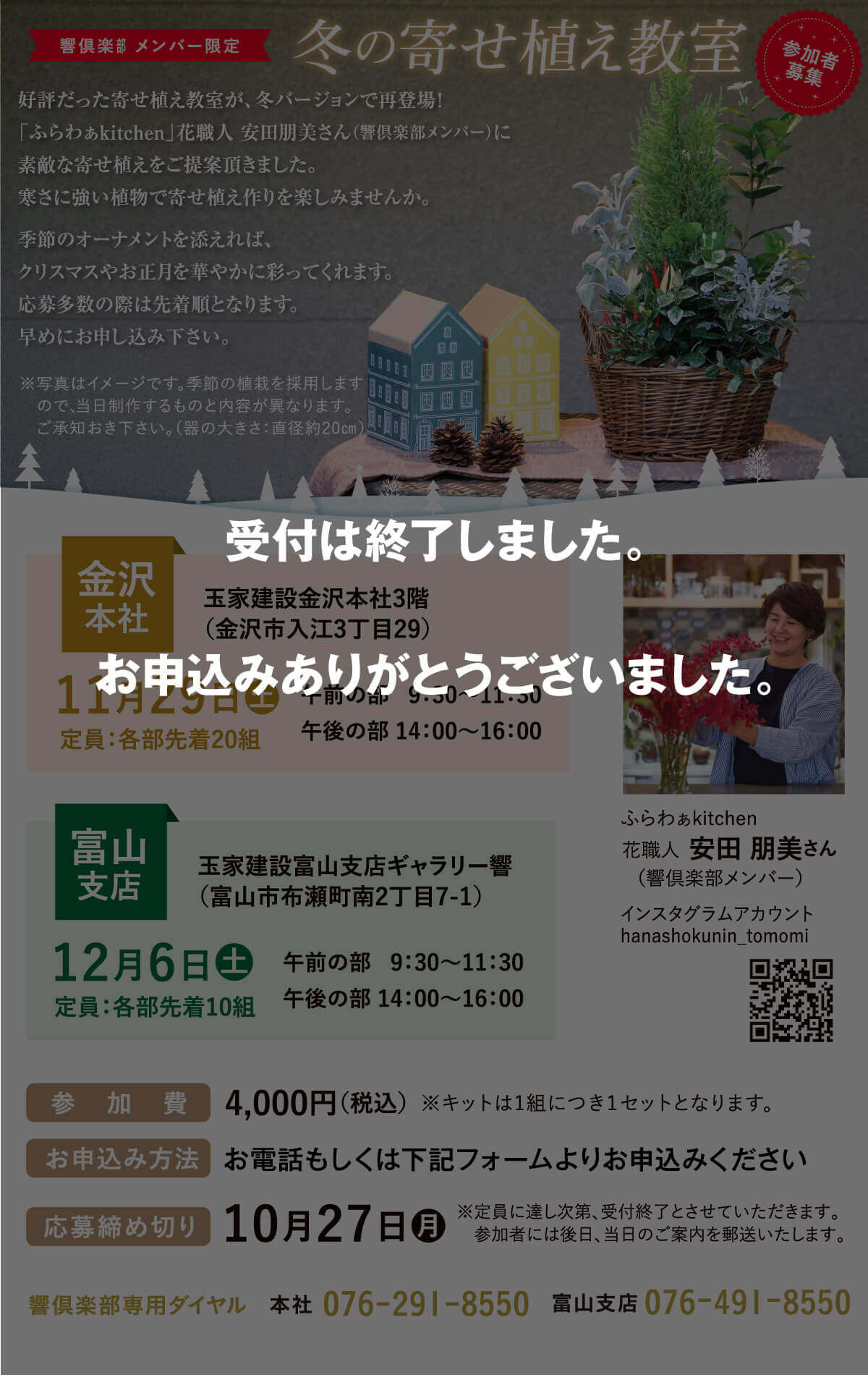 11/29(土)金沢・12/6(土)富山 「冬の寄せ植え教室」開催