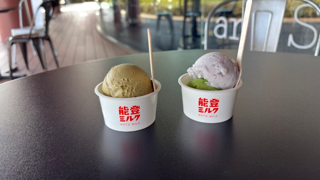 最後に館内喫茶店「HUM&Go」で能登ミルクを使ったジェラートをいただきました。
