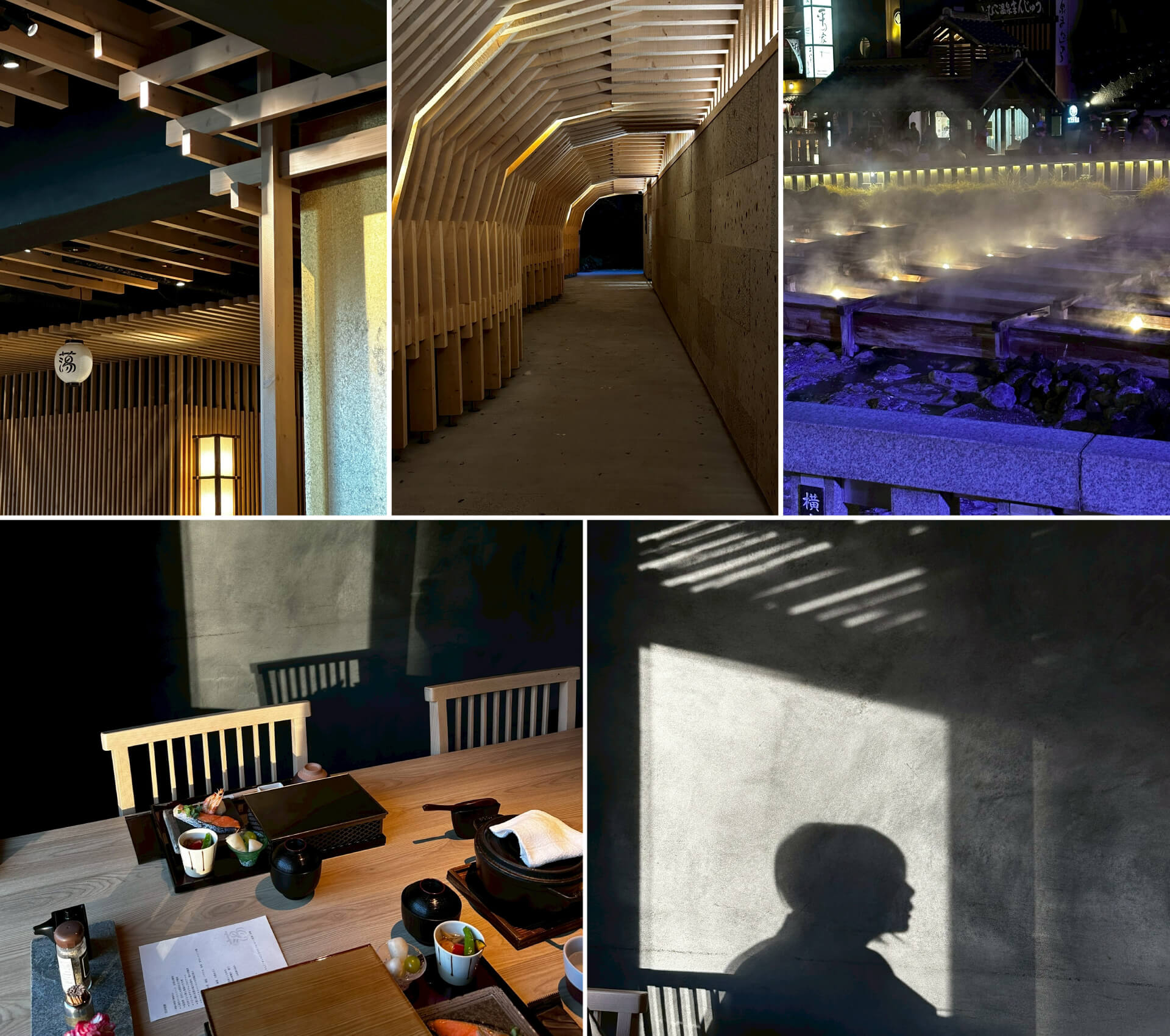 お湯のぬくもりはもちろん、宿の木の香りや、どこか懐かしい畳の感触に触れて、派手なデザインではなく素材そのものの温かみや、静かに流れる時間、人を包み込むような柔らかい光、「心地よい空間って、こういうことなんだな」と、感じました。
