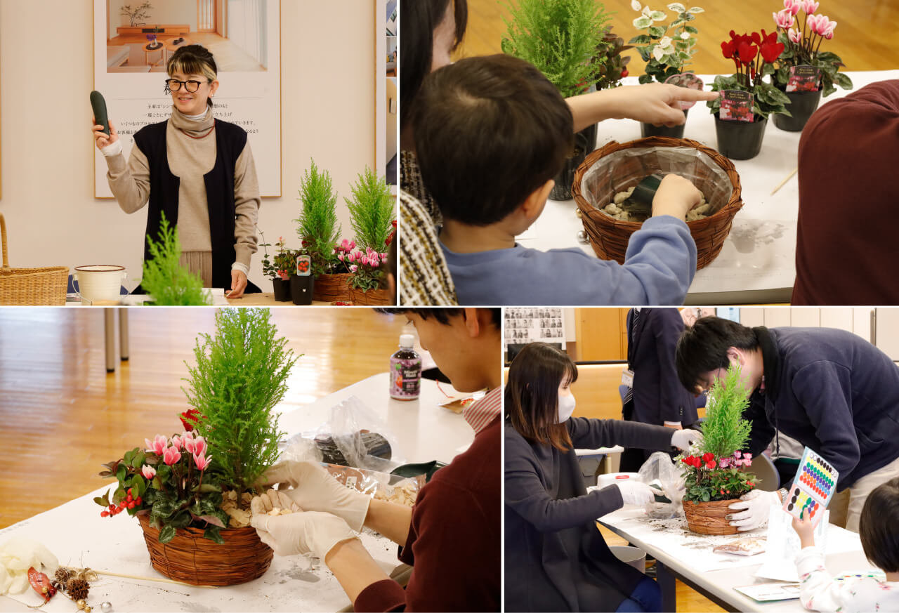 会場では、皆さんお好きな花材を選び、楽しそうにオーナメントづくりをされていて「こんな素敵な寄せ植えが自分で作れて嬉しい」「家に飾るのが楽しみです!」といったお声をたくさんいただき、胸がいっぱいになりました。
