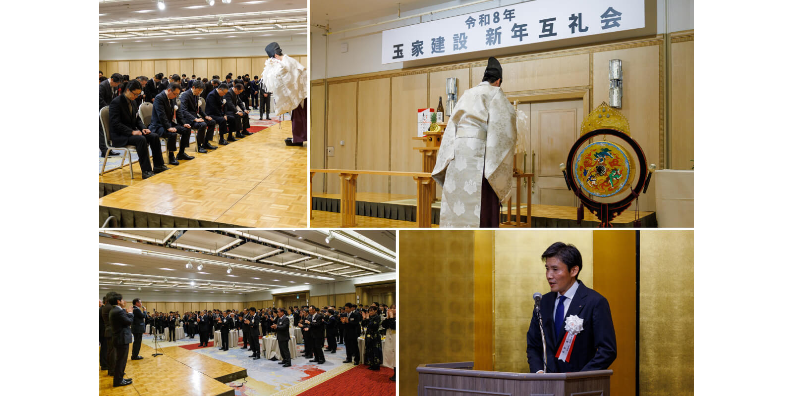 新年互礼会では、社員をはじめ、家づくりの仲間である、玉家会・匠の会の皆さま、総勢約250名が一堂に会し、新たな年のスタートを共に祝います。