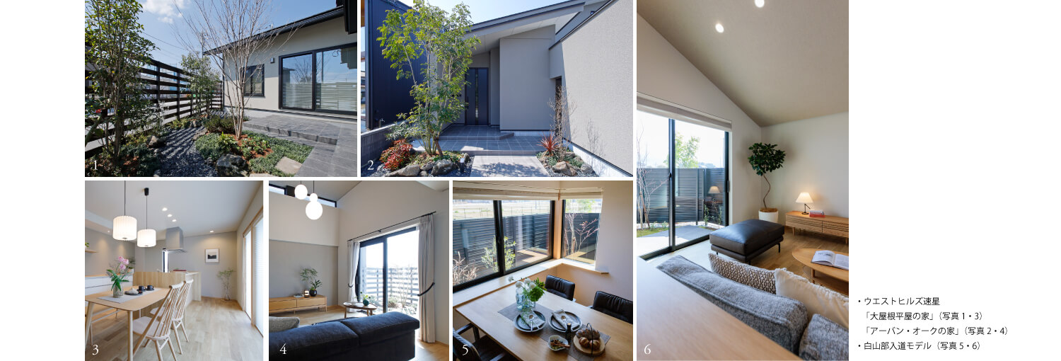 石川:白山市陽羽里の家・ 白山市部入道モデル 富山:「ウエストヒルズ速星」2棟の居心地モデル